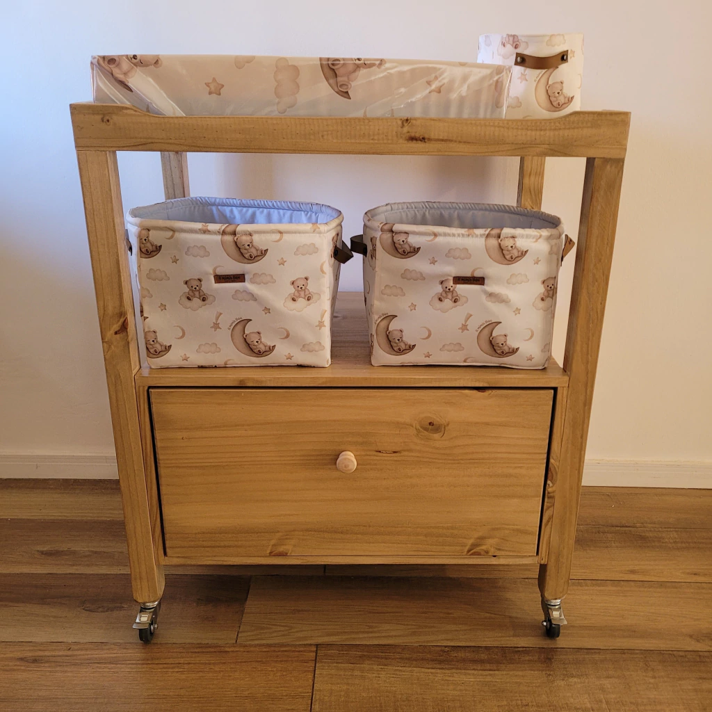 Posee la tapa principal de cambiado, 1 estante para que puedas tener todo lo que necesitas en un solo lugar y 1 cajón con guias telescopicas para guardar lo que quieras!