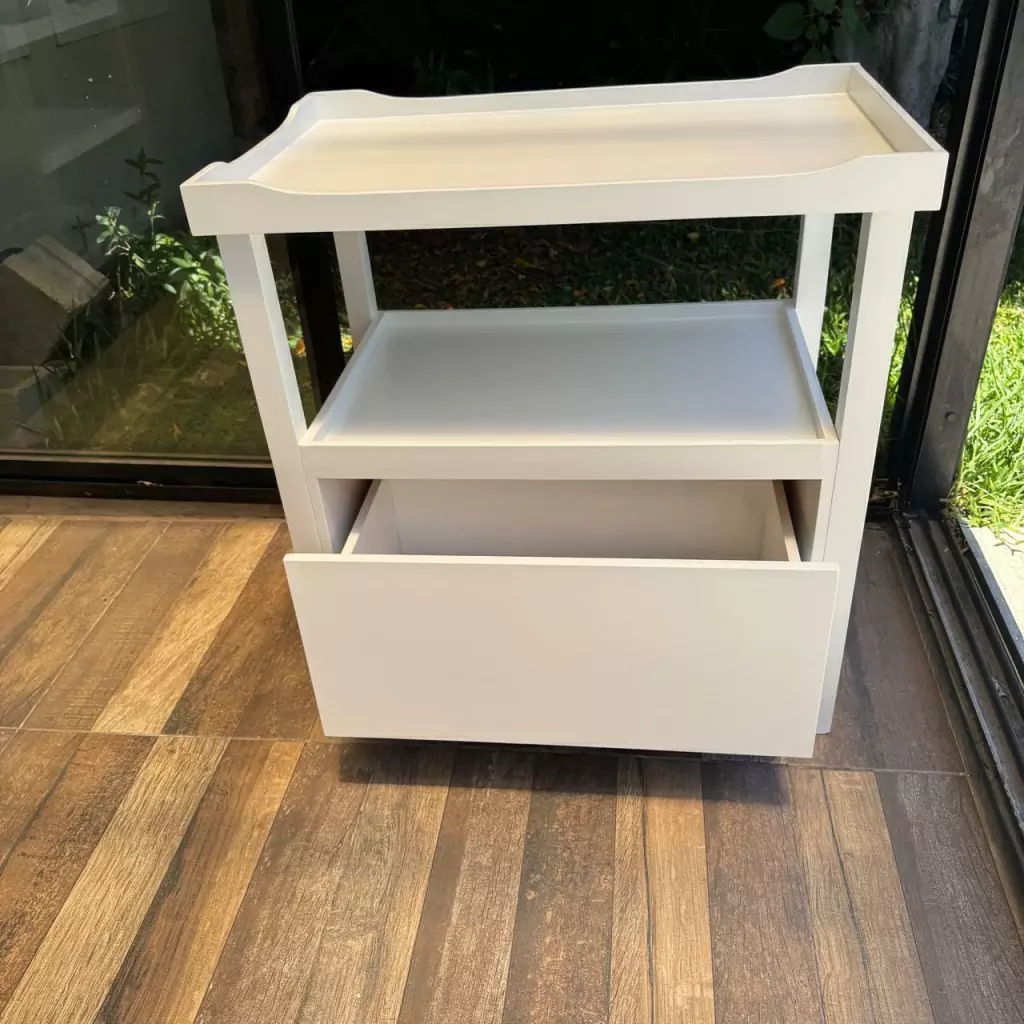 Posee la tapa principal de cambiado, 1 estante y 1 cajón más para que puedas tener todo lo que necesitas en un solo lugar.